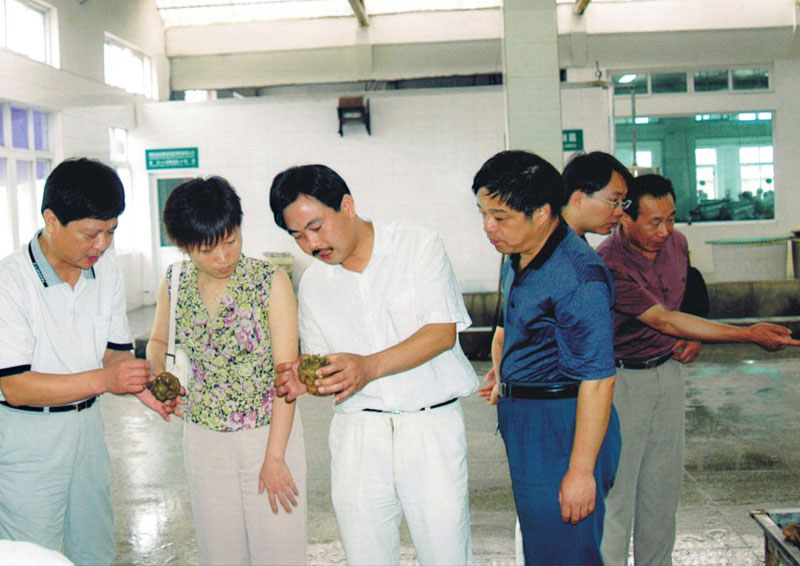 原余姚市榨菜協(xié)會(huì)會(huì)長章苗康(左)原人大常委會(huì)副委員長布赫(中)公司總經(jīng)理阮銀福(右)